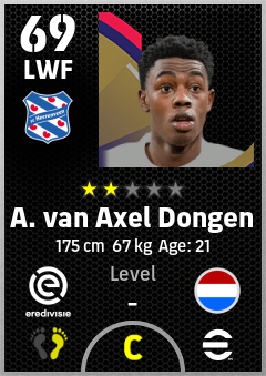 . A. Van Axel Dongen is a Left Wing Forward footballer from Netherlands who plays for Sc Heerenveen in eFootball 2026.