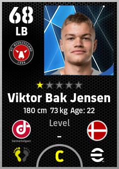 . Viktor Bak Jensen is a Left Back footballer from Denmark who plays for Midtjylland Sr in eFootball 2026.