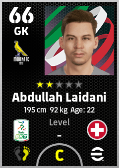 . Abdullah Laidani is a Goalkeeper footballer from Switzerland who plays for Modena Gb in eFootball 2026.