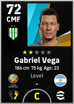 . Gabriel Vega is a Center Midfielder footballer from Argentina who plays for Banfield Vb in eFootball 2026.