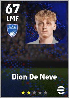 . Dion De Neve is a Left Midfielder footballer from Belgium who plays for Blackburn Bw in eFootball 2026.