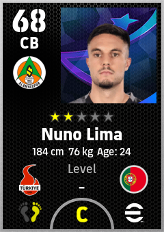 . Nuno Lima is a Center Back footballer from Portugal who plays for Corendon Alanyaspor in eFootball 2026.