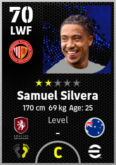 . Samuel Silvera is a Left Wing Forward footballer from Australia who plays for Middlesbrough Rw in eFootball 2026.