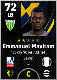 . Emmanuel Maviram is a Left Back footballer from Nigeria who plays for Cd Tondela in eFootball 2026.