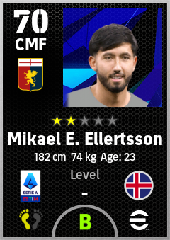 . Mikael E. Ellertsson is a Center Midfielder footballer from Iceland who plays for Genova Rb in eFootball 2026.