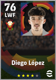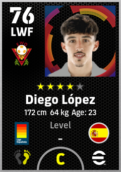 . Diego López is a Left Wing Forward footballer from Spain who plays for Valencia Bn in eFootball 2026.