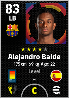 . Alejandro Balde is a Left Back footballer from Spain who plays for Fc Barcelona in eFootball 2026.