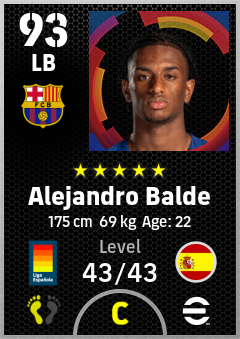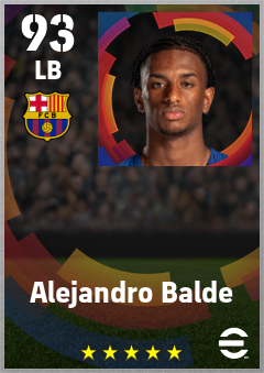 . Alejandro Balde is a Left Back footballer from Spain who plays for Fc Barcelona in eFootball 2026.