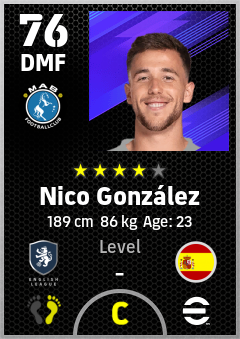. Nico González is a Defensive Midfielder footballer from Spain who plays for Manchester B in eFootball 2026.