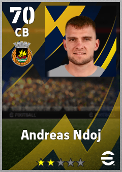 . Andreas Ndoj is a Center Back footballer from Greece who plays for Rio Ave Fc in eFootball 2026.