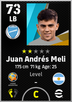 . Juan Andrés Meli is a Left Back footballer from Argentina who plays for Godoy Cruz Ab in eFootball 2026.