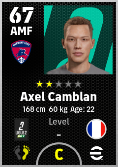. Axel Camblan is a Attacking Midfielder footballer from France who plays for Clermont Foot 63 in eFootball 2026.