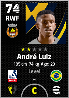 . André Luiz is a Right Wing Forward footballer from Brazil who plays for Rio Ave Fc in eFootball 2026.
