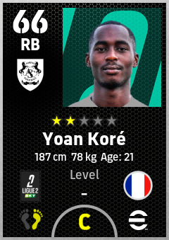 . Yoan Koré is a Right Back footballer from France who plays for Amiens Sc in eFootball 2026.