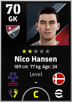 . Nico Hansen is a Goalkeeper footballer from Denmark who plays for Colorado Bb in eFootball 2026.