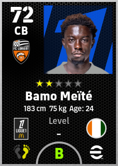 . Bamo Meïté is a Center Back footballer from Côte D'ivoire who plays for Fc Lorient in eFootball 2026.