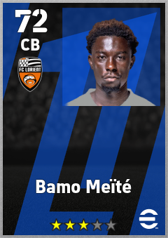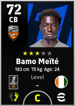 . Bamo Meïté is a Center Back footballer from Côte D'ivoire who plays for Fc Lorient in eFootball 2026.