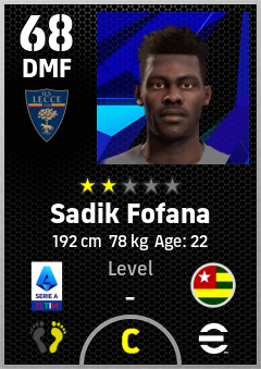 . Sadik Fofana is a Defensive Midfielder footballer from Togo who plays for Lecce Gr in eFootball 2026.