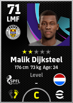 . Malik Dijksteel is a Left Midfielder footballer from Netherlands who plays for St. Mirren Fc in eFootball 2026.