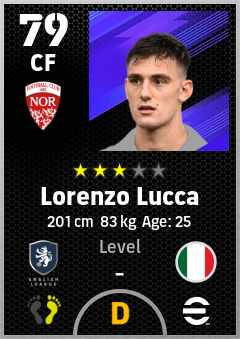 . Lorenzo Lucca is a Center Forward footballer from Italy who plays for Nottingham Rw in eFootball 2026.