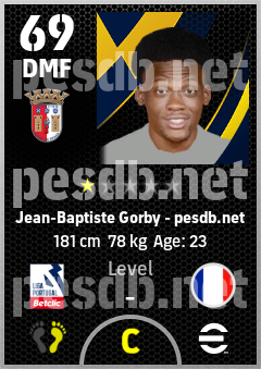 . Jean-Baptiste Gorby is a Defensive Midfielder footballer from France who plays for Sporting Braga in eFootball 2026.