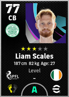 . Liam Scales is a Center Back footballer from Republic Of Ireland who plays for Celtic Fc in eFootball 2026.