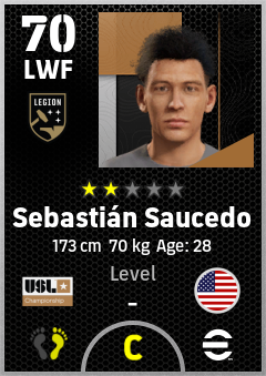. Sebastián Saucedo is a Left Wing Forward footballer from United States who plays for Birmingham Legion Fc in eFootball 2026.