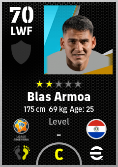 . Blas Armoa is a Left Wing Forward footballer from Paraguay who plays for Mendoza Nb in eFootball 2026.