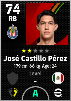 . José Castillo Pérez is a Right Back footballer from Mexico who plays for Cd Guadalajara in eFootball 2026.