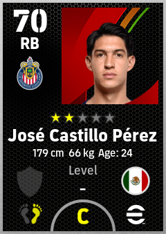 . José Castillo Pérez is a Right Back footballer from Mexico who plays for Cd Guadalajara in eFootball 2026.
