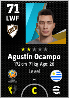 . Agustín Ocampo is a Left Wing Forward footballer from Uruguay who plays for Vicente López M in eFootball 2026.