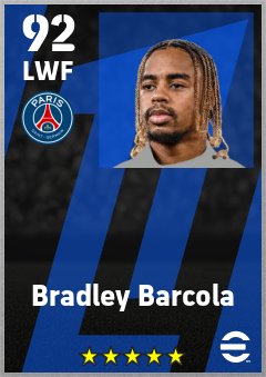 .Bradley Barcola is a Left Wing Forward footballer from France who plays for Paris Saint-Germain in eFootball 2026.