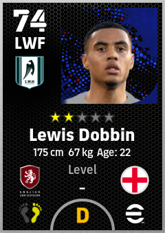 . Lewis Dobbin is a Left Wing Forward footballer from England who plays for Preston Wb in eFootball 2026.
