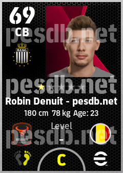 . Robin Denuit is a Center Back footballer from Belgium who plays for Charleroi Zw in eFootball 2026.