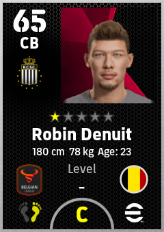 . Robin Denuit is a Center Back footballer from Belgium who plays for Charleroi Zw in eFootball 2026.
