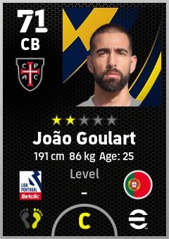 . João Goulart is a Center Back footballer from Portugal who plays for Casa Pia Ac in eFootball 2026.