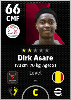 . Dirk Asare is a Center Midfielder footballer from Belgium who plays for Waregem Gr in eFootball 2026.
