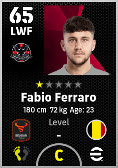 . Fabio Ferraro is a Left Wing Forward footballer from Belgium who plays for Denderleeuw Bzr in eFootball 2026.