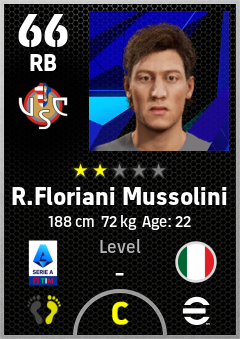 . R.floriani Mussolini is a Right Back footballer from Italy who plays for Cremona Gr in eFootball 2026.
