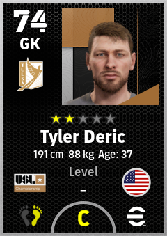 . Tyler Deric is a Goalkeeper footballer from United States who plays for Fc Tulsa in eFootball 2026.