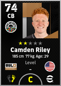 . Camden Riley is a Center Back footballer from United States who plays for Oakland Roots Sc in eFootball 2026.