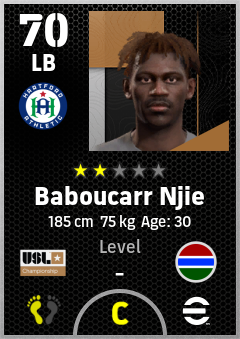 . Baboucarr Njie is a Left Back footballer from The Gambia who plays for Hartford Athletic in eFootball 2026.