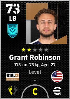 . Grant Robinson is a Left Back footballer from United States who plays for Monterey Bay F.c. in eFootball 2026.
