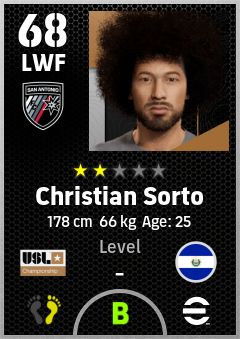 . Christian Sorto is a Left Wing Forward footballer from El Salvador who plays for San Antonio Fc in eFootball 2026.