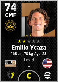 . Emilio Ycaza is a Center Midfielder footballer from United States who plays for Charleston Battery in eFootball 2026.