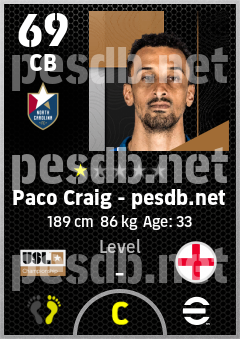 . Paco Craig is a Center Back footballer from England who plays for North Carolina Fc in eFootball 2026.