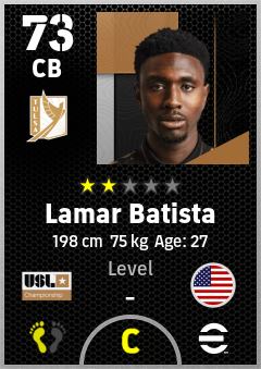 . Lamar Batista is a Center Back footballer from United States who plays for Fc Tulsa in eFootball 2026.