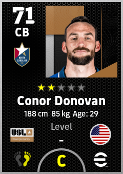 . Conor Donovan is a Center Back footballer from United States who plays for North Carolina Fc in eFootball 2026.