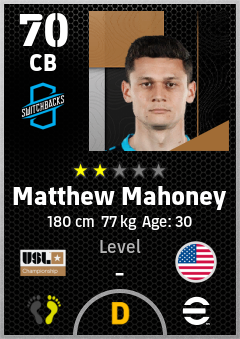 . Matthew Mahoney is a Center Back footballer from United States who plays for Colorado Springs Fc in eFootball 2026.