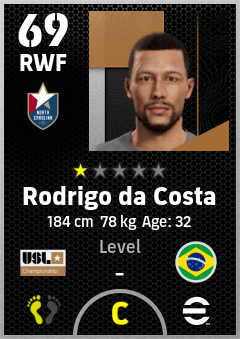 . Rodrigo Da Costa is a Right Wing Forward footballer from Brazil who plays for North Carolina Fc in eFootball 2026.